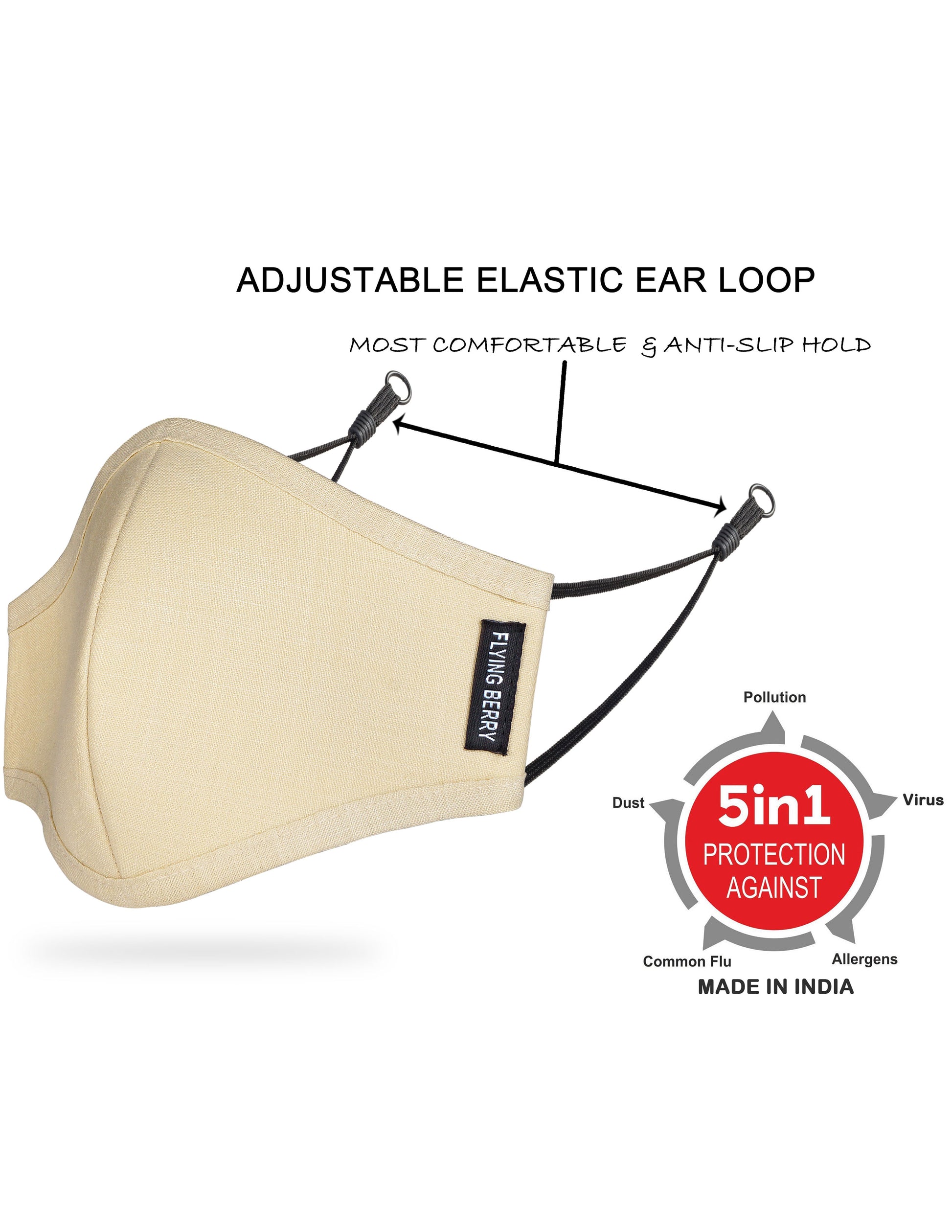 FLYING BERRY Linen N95 Anti Pollution Face Mask, Washable & Reusable